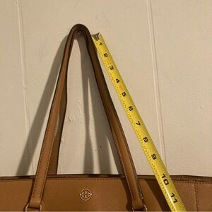 Elegant tan leather tote bag perfect for everyday use. Features a spacious interior and sturdy handles for comfortable carrying.
