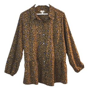 Item: LOGO Lori Goldstein Blouse Womens Large Brown Long Sleeve Button Animal Print