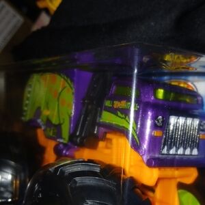 Rev up the fun with the Hot Wheels Dino Monster Truck. This vibrant green and purple vehicle is perfect for thrilling adventures.