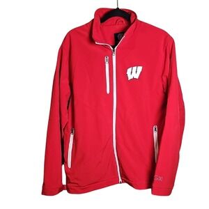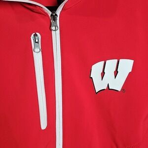 Excellent used condition on the great, bright red Wisconsin Zip up Jacket.