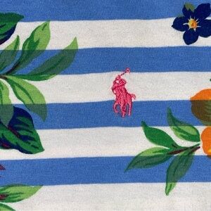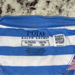 Polo Ralph Lauren Striped Floral Jersey Tee Girls XL 16 Blue Cotton Kids Youth