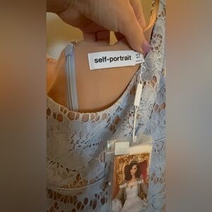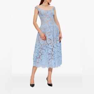 NWT- Self-Portrait Blue Midi Dress in Floral Lace