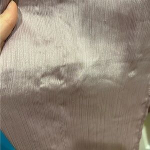 Very pretty dress with straps. Lined. Zipper in the side. slit on one side. Pale lilac color. Size Large. About 20” pit to pit, about 47” long.