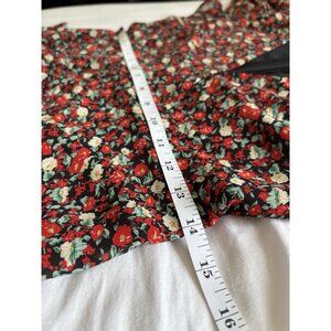 Lulus Boho Floral Faux Wrap Dress S Black/Red Flutter Sleeve