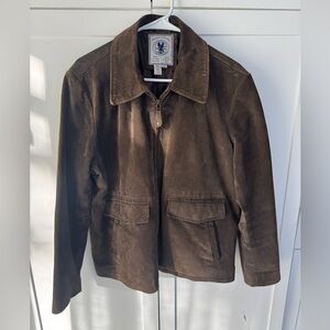 JLC Men’s Brown Suede Leather Bomber Jacket Zip Up Coat Size L