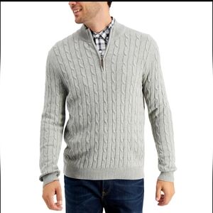 Club Room Men’s Gray 100% Cotton Cable Knit Quarter-Zip Sweater - Large