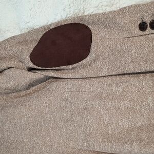 Tommy Hilfiger Women's Tan Marled Knit Blazer Elbow Patches Jacket Size 2 Preppy