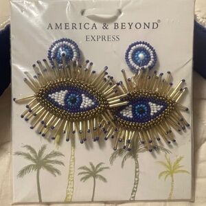 America & Beyond Evil Eye Beaded Shoulder Bag Purse & Earrings NWT Blue White