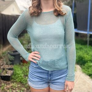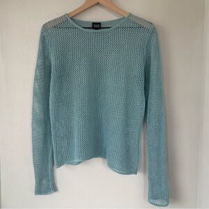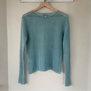 EILEEN FISHER M S VTG Linen Delave Open Stitch Sweater • Aqua Turquoise Seafoam