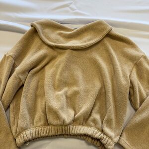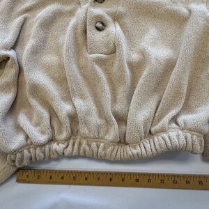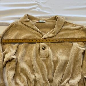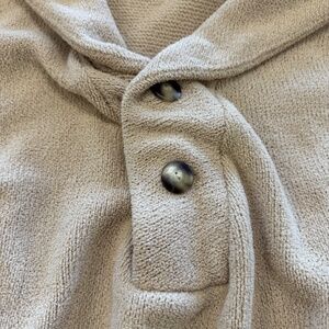 Free People Beach Bino tan pullover sweater. Cute shawl collar and tortoise buttons. Size Large