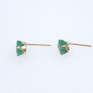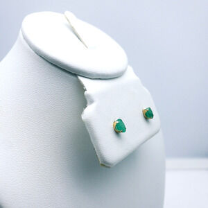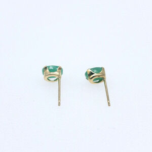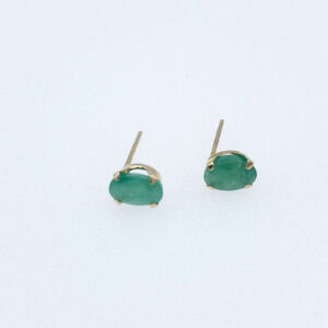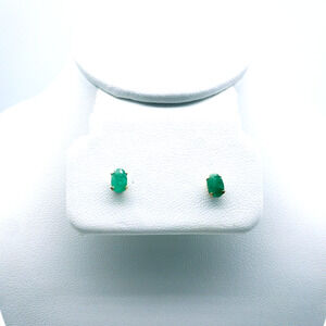 14K Gold Emerald Stud Earrings Oval Cut Prong Set ~1.0 CTW Fine Jewelry
