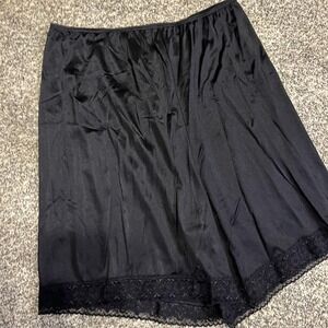 Vanity Fair Split Slip Shorts Womens XL Black Nylon Lace Trim Lingerie Underwear