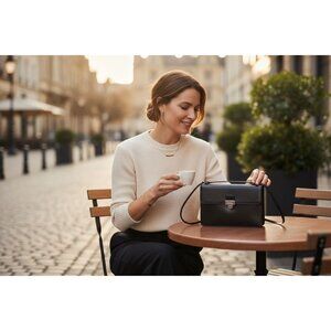 This crossbody bag exudes timeless elegance with its vintage Italian craftsmanship. Crafted from sleek black leather, it features a compact size and adjustable strap for versatile styling.