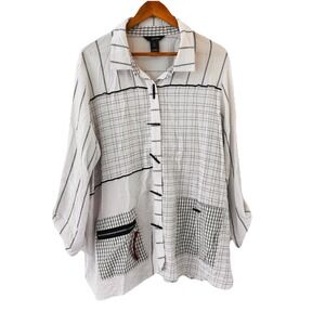 Ali Miles Abstract Graphic Tunic Top 2X Lagenlook Art to Wear Roll Tab Sleeve