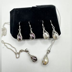 You get 2, 18kt GP, genuine black/white pearl earring and necklace double set!!