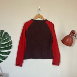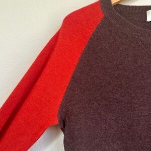 Vintage Neiman Marcus Cashmere Raglan Sweater. Burgundy maroon with orange red sleeves.