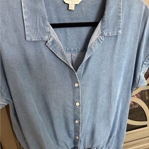 Good condition! Size Small. Chic light blue button-down with rolled sleeves. Can be tied up in the front or let down.