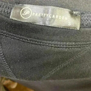 Pretty Garden Long sleeved Black sweatshirt with 2 white stripes on wrists. Size Small in gently used condition.