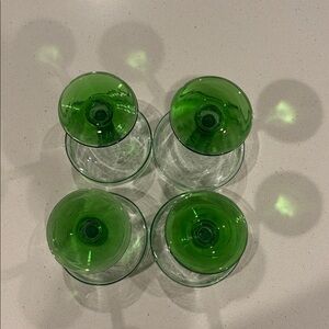4 Hand Blown Mexican Margarita Glass With a Green Rim and Green Base