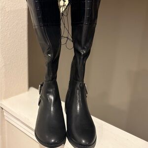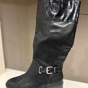 St Johns Bay Roslyn Riding Boot Size 8W Wide Calf Faux Leather Tall Black NEW