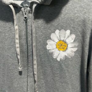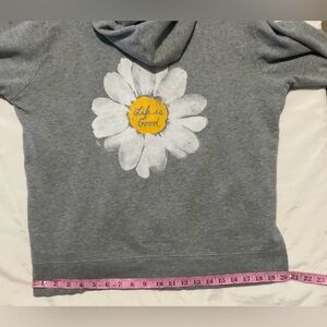 Soft gray hoodie with a charming white and yellow flower design. Ideal for casual comfort.
