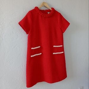 Tuckernuck Red Tweed Jackie Dress Pearl Embellishment L
