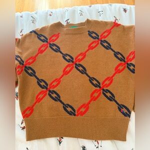 Clare V chains Brown Sweater with Red and Blue Pattern