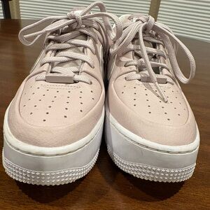 NIKE Women’s Air Force 1 Sage Low Pyschic Pink Leather Platform Sneakers