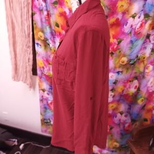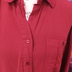 Elegant Women's Button-Down Shirt - Deep Red