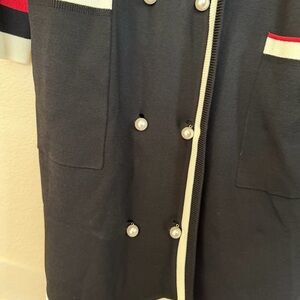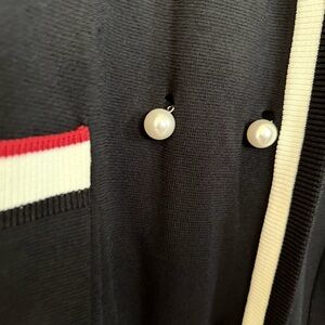 Sweater can be completely opened or fastened by the pearls