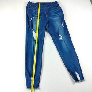 JVINI Womens Jeggings Jeans Mid Rise Distressed Elastic Waist Blue Plus Size 1XL