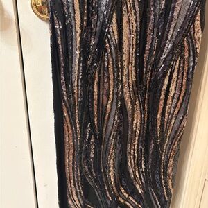 Adrianna Papell Black and Gold Sequin Maxi Dress