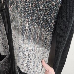 Anthropologie Trouve Womens Sweater Cardigan Zip Up Black Gray Ombre Faux Leather Trim Size Medium. Front pockets. Very soft stretchy knit. Has flecks of metallic pink and silver. Great condition!