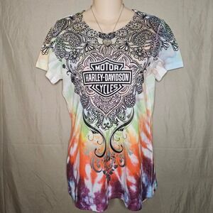 Eye-catching Harley-Davidson t-shirt vibrant tie-dye pattern.