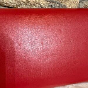 Authentic Valentino red leather wallet on chain / clutch featuring signature embossed V logo on the front.