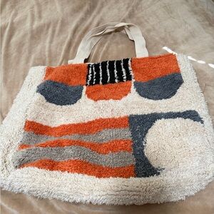 Ink + Alloy Abstract Patterned Textured Tote Bag - Cream, Orange, and Gray