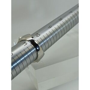 The ring is a size 10.5 and measures 20mm (0.79") wide, with a unique split band design that tapers to 3.5mm (0.14"). Its silver tone adds a touch of sophistication to any outfit, making it the perfect accessory for both casual and formal occasions.