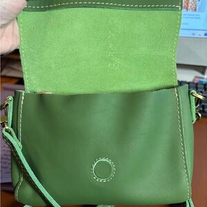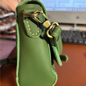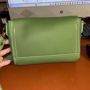 Stylish Portland Leather bag in vibrant lime. Compact and trendy design. Ideal for daily use.