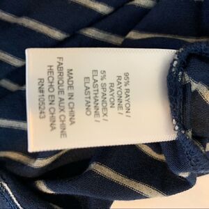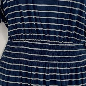 Bobeau Celeste navy and grey striped smocked waist dress. Short sleeves.