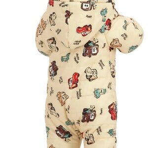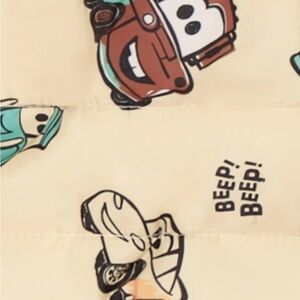 Adorable Disney puffer jacket. Cream color with playful Disney Pixar cars lighting McQueen character prints. Cozy and warm for baby