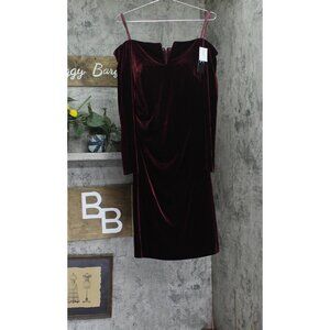 NWT X By Xscape Velvet Long Sleeve Off-The-Shoulder Sheath Dress Burgundy Red 16