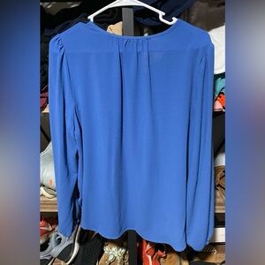 Elevate your wardrobe with this elegant blue V-neck blouse. Perfect for both casual and formal occasions. Never worn but tags removed.