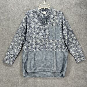 GAP Top Womens Medium Blue Shirt Floral Tunic Oversized Chambray Boho Peasant