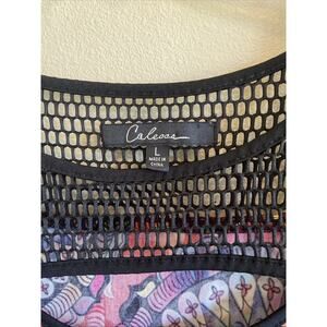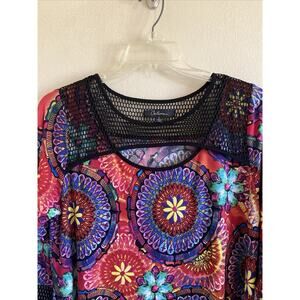 Calessa Vibrant Floral Boho Flower Hippie Mesh Cutout Tunic Top Wearable Art L