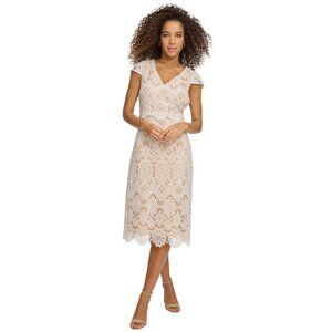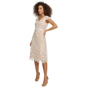 NWT Kensie Womens Floral-Lace A-Line Dress KDTP2829 White / Nude 14