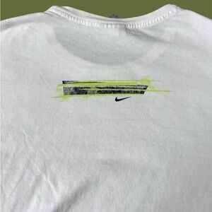 Vintage White Nike Size M Green Logo Faded Graphic T-Shirt 00s Mens Sportswear