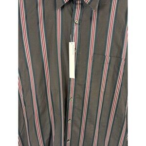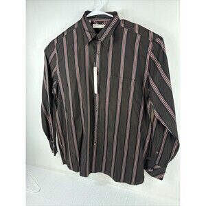 Perry Ellis Mens Size L Brown Stripe Button Up Shirt Long Sleeve NWT 100% Cotton