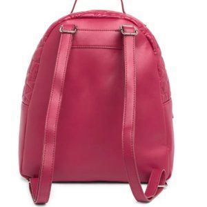 A cutesy chic heart quilted backpack with a front zipper pocket offers a refined, sleek style to carry all of your essentials with you while on the go.