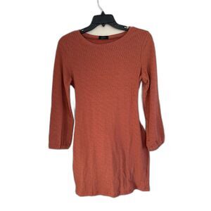 Dressystar Textured Long Sleeve Mini Dress - Rust/Terracotta - Size XL