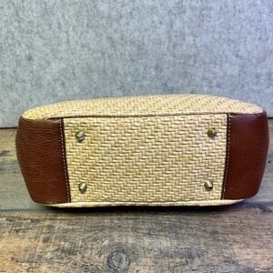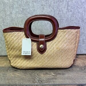 Franco Sarto Raffia Straw Tote Bag Top Handle Brown Leather Trim Natural NWT